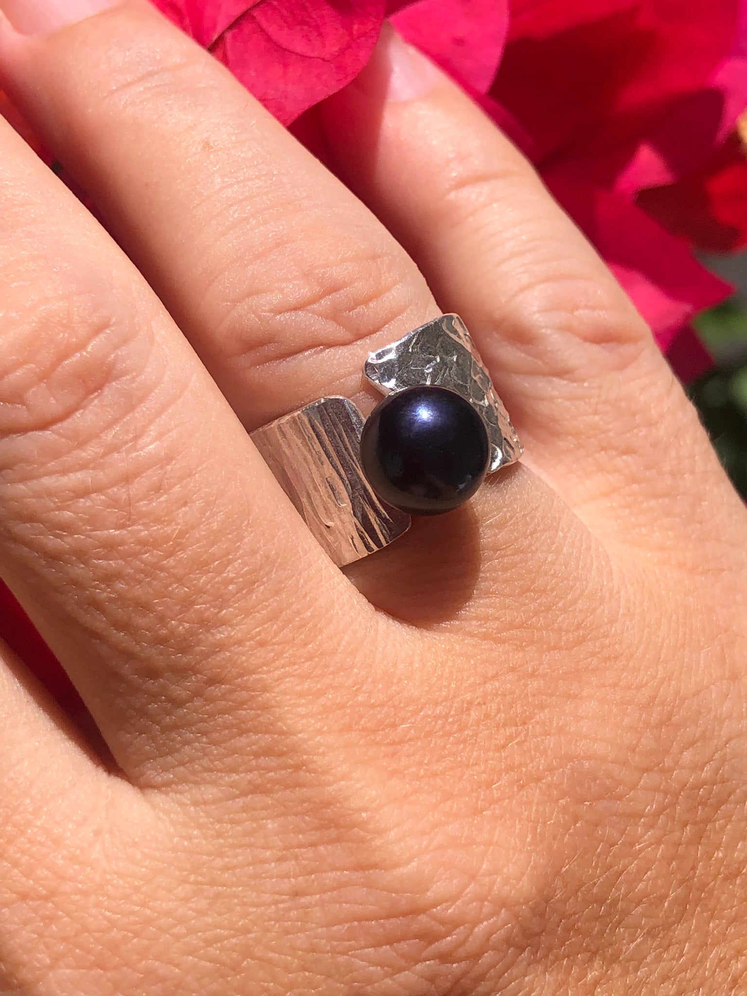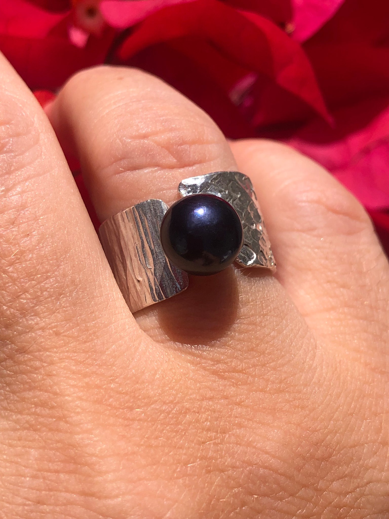 ✨ Anel em Prata 950 com Pérola Negra Genuína ✨