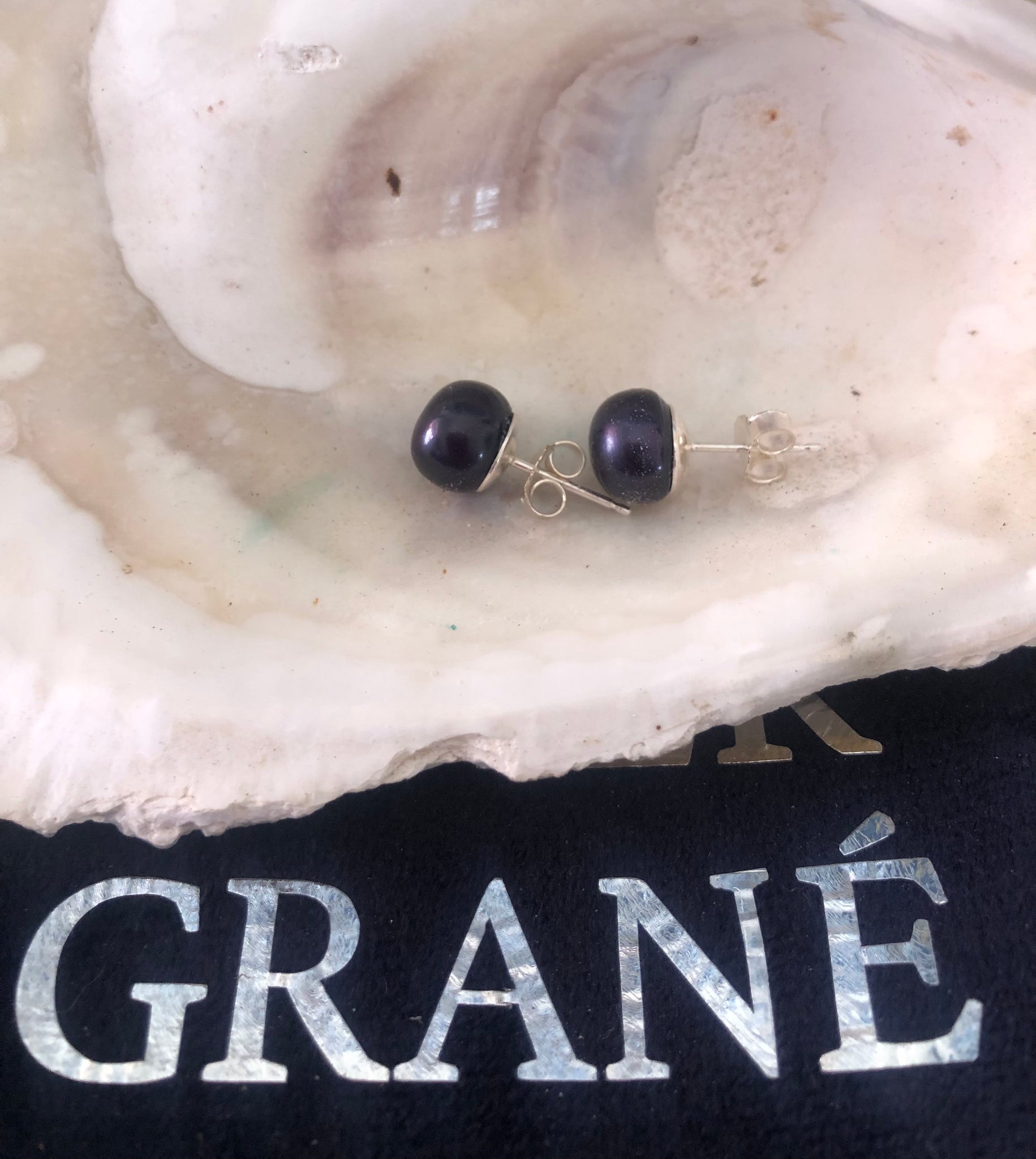 ✨ Brincos em Prata 950 com Pérolas Genuínas Negras ✨ 9,5mm