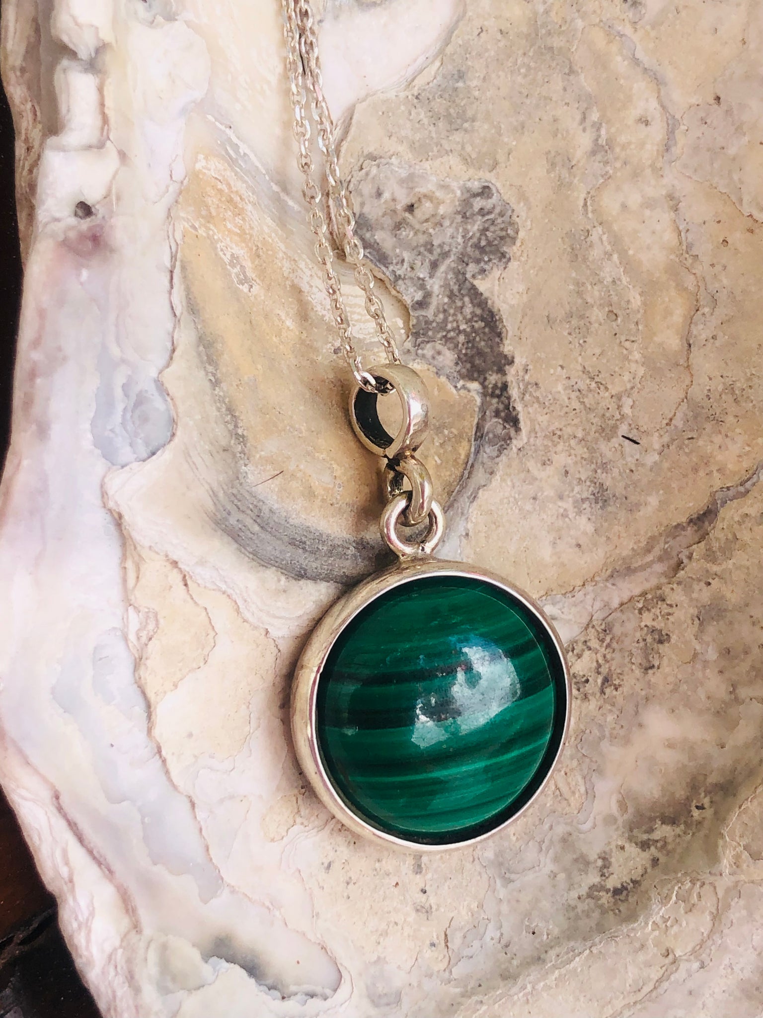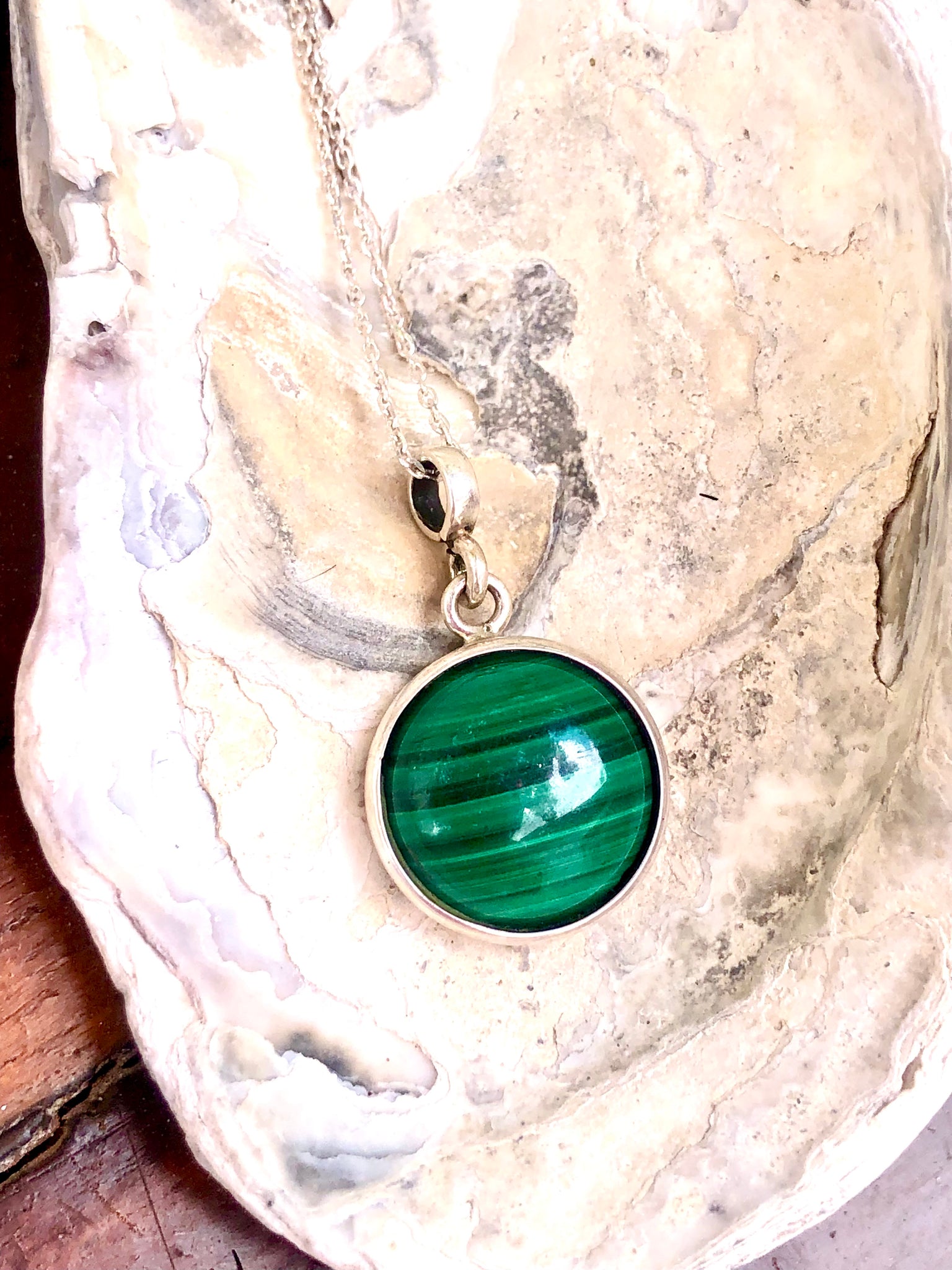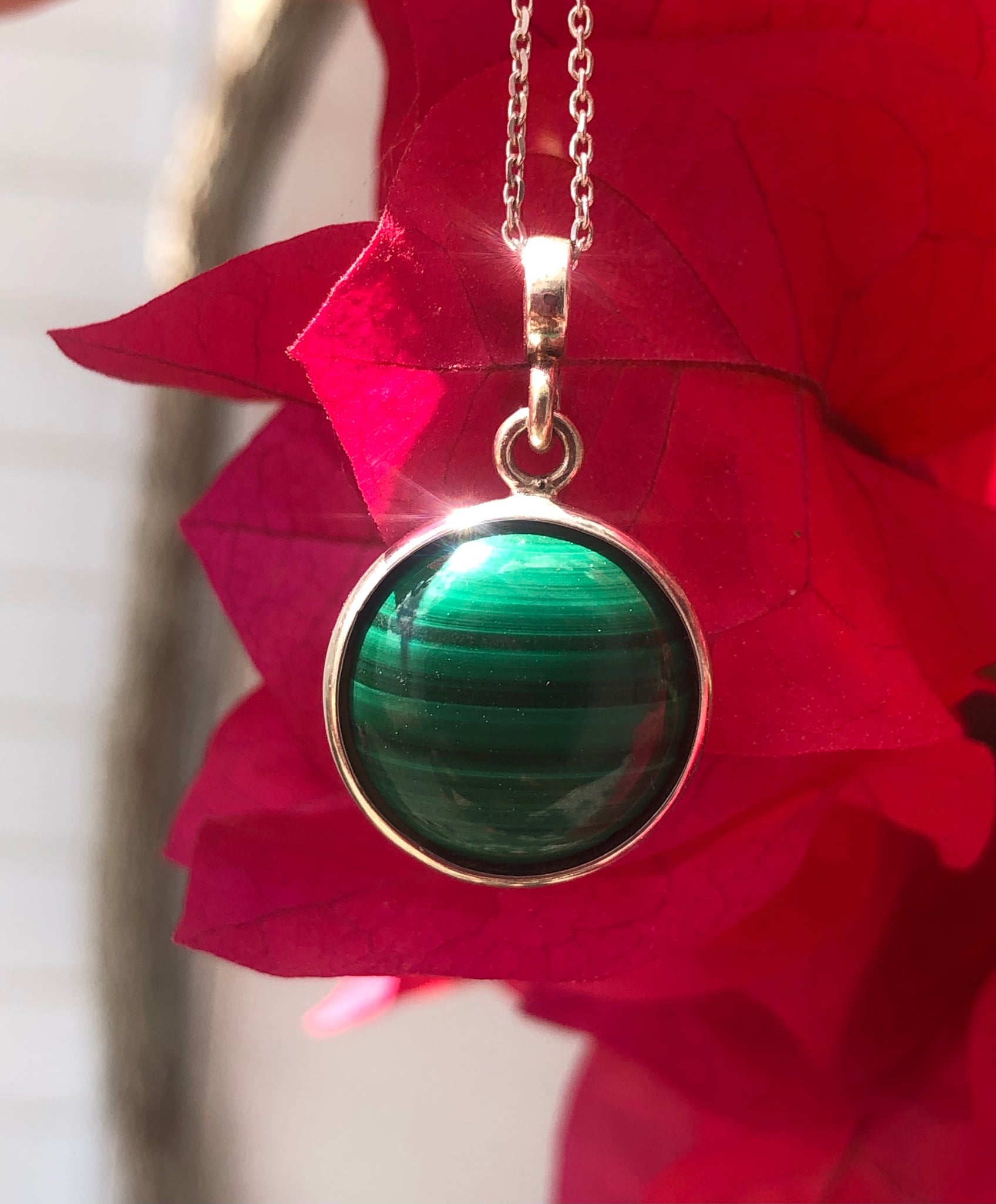 Símbolo de transformação e proteção, a malaquita guarda em suas ondas verdes a força da natureza e a energia da renovação.